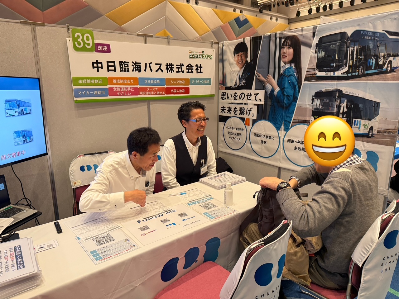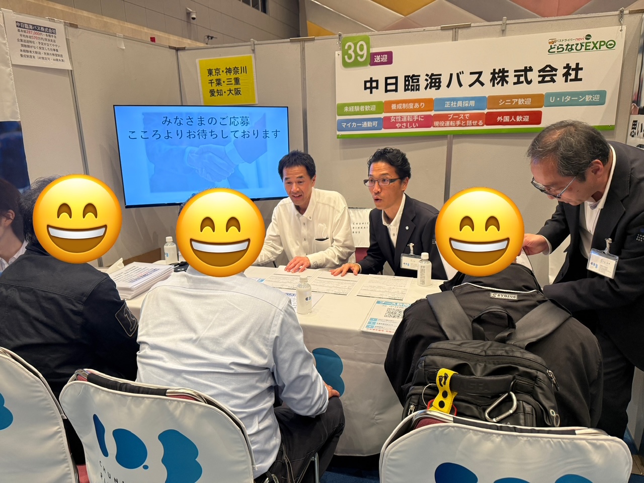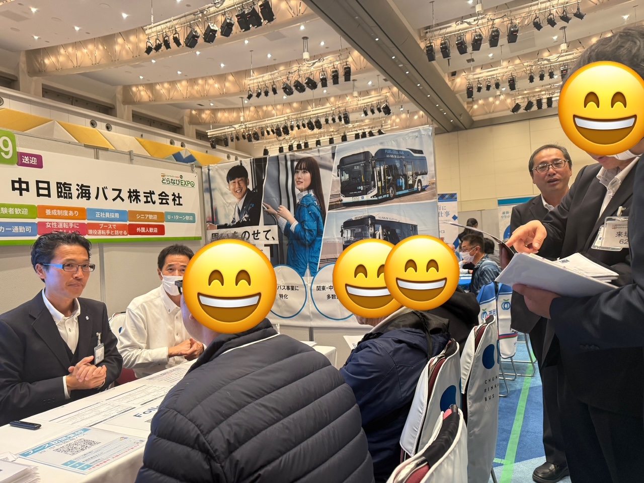 今回の出展は、求人情報やホームページ、SNSだけではお伝えしきれない当社の魅力や仕事の面白さを直接お伝えし、中日臨海バス株式会社を共に盛り上げてくださる仲間をお迎えするためでした。