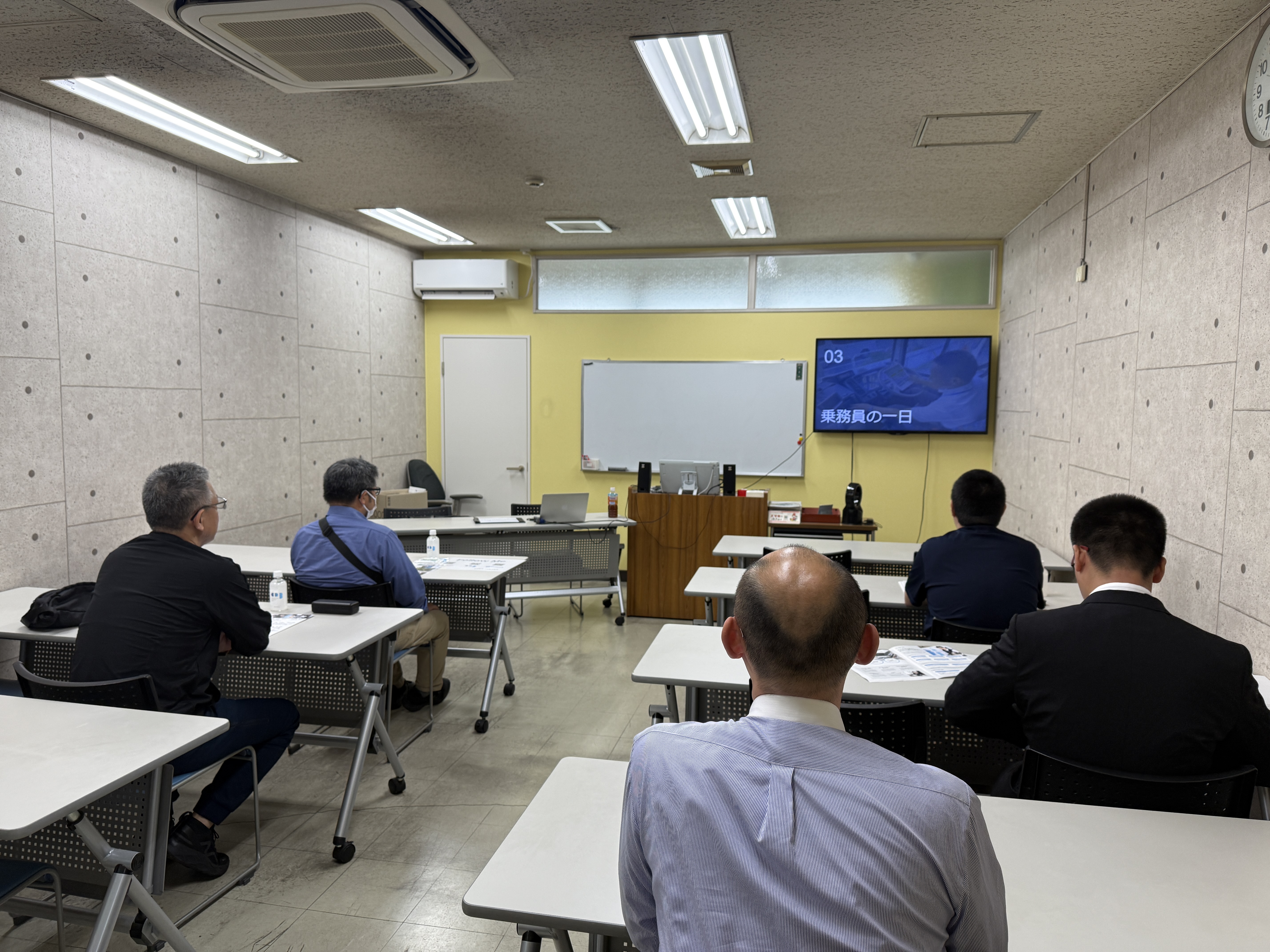 まずはじめに、品川シーサイド営業所の運行管理者から、当社の「会社概要」「乗務員の一日」「給与体系」「福利厚生」について、詳細にご説明させていただきました。