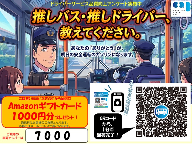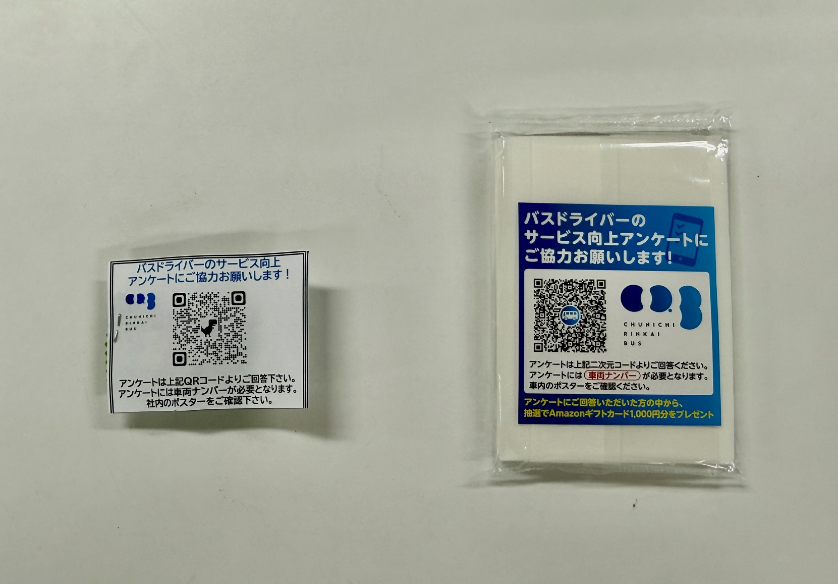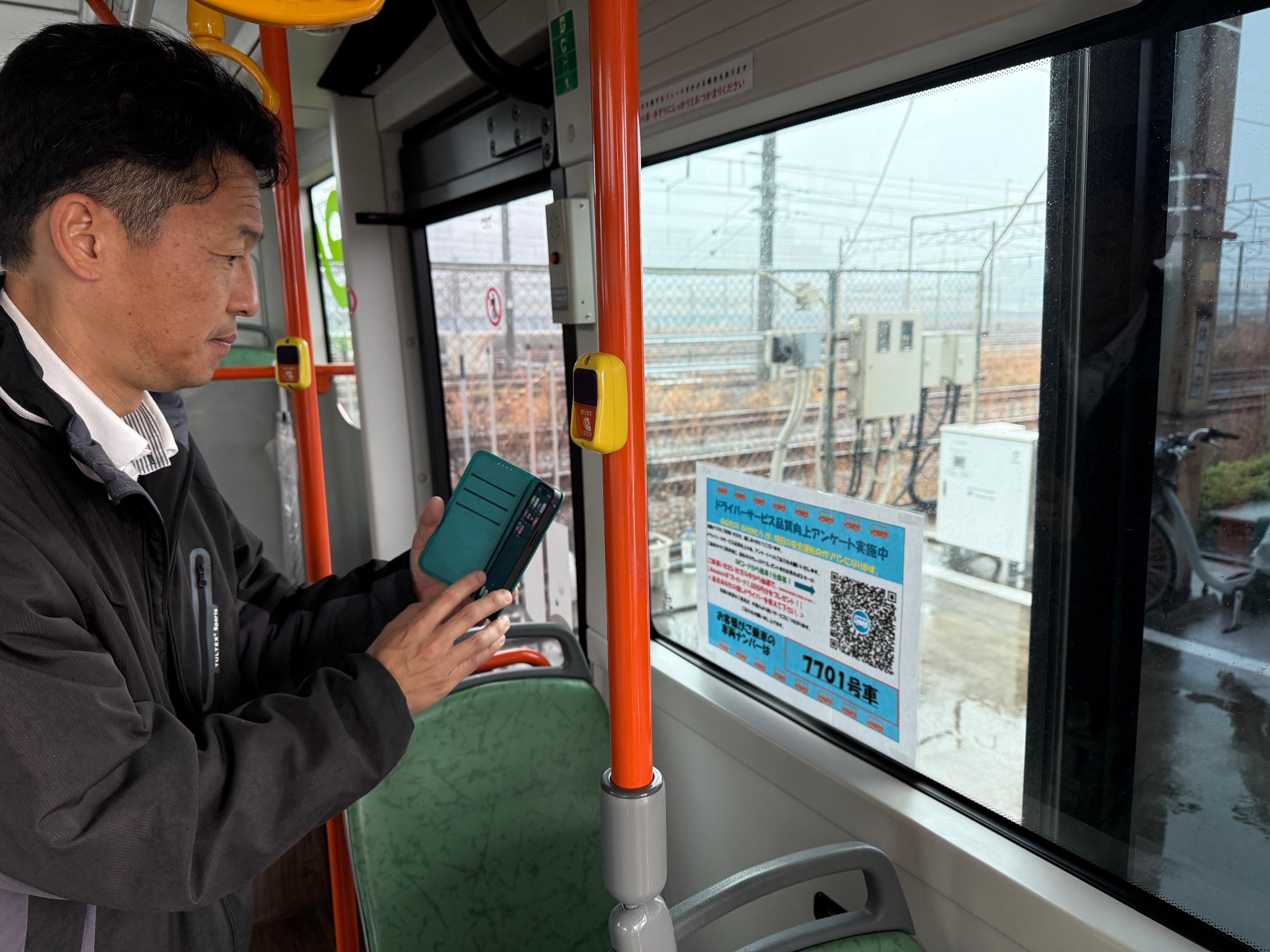 バス車内に、アンケート回答用のQRコードが載ったポスターやミニチラシをご用意しております。