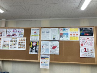 営業所内には、厚生課作成のポスターや「かわら版」がバックナンバーまで綺麗に掲示されています。いつでも情報を引き出せる環境が、乗務員の皆様の高い健康意識を支えています。