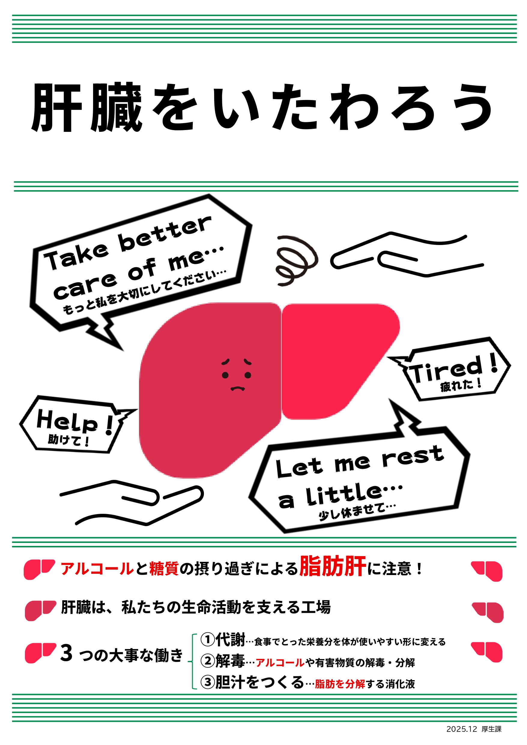 2025年締めくくりの、ポスター&かわら版のテーマは『肝臓をいたわろう』です。